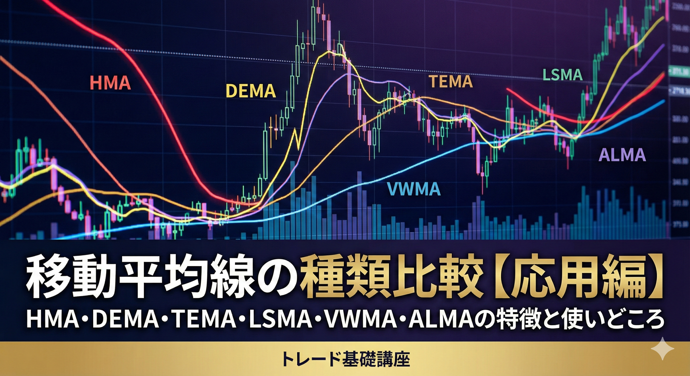 移動平均線の種類比較【応用編】|HMA・DEMA・TEMA・LSMA・VWMA・ALMAの特徴と使いどころ