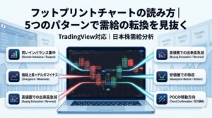 フットプリントチャートの基本概念をまだ押さえていない方は、出来高フットプリント入門|価格帯ごとの需給バランスを読む方法から読んでみてください。